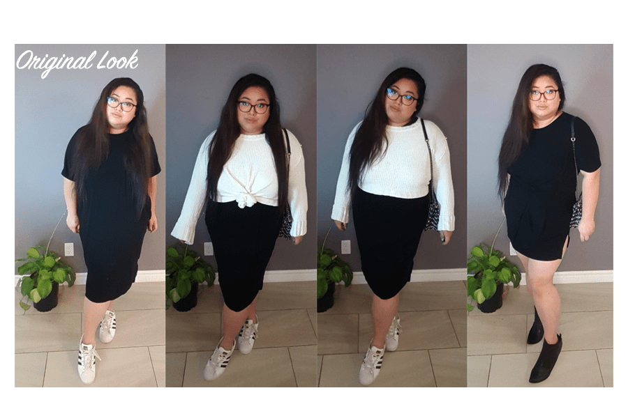 The key to restyling this look is to use fabric manipulation and the use of belt to accentuate the body figure in order to switches to different look.